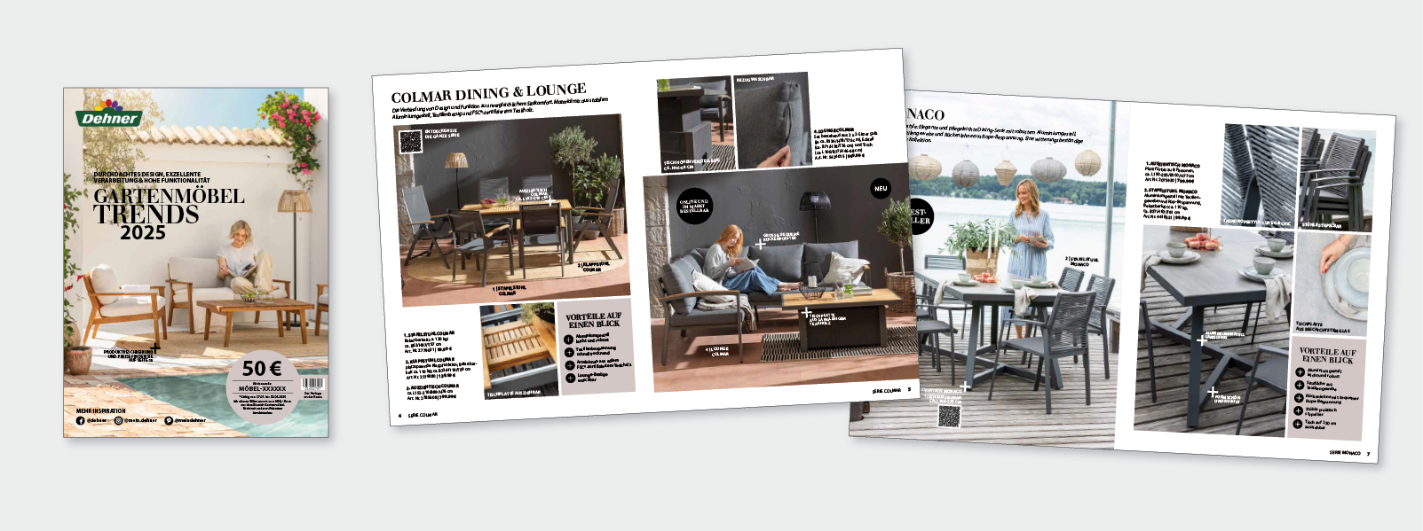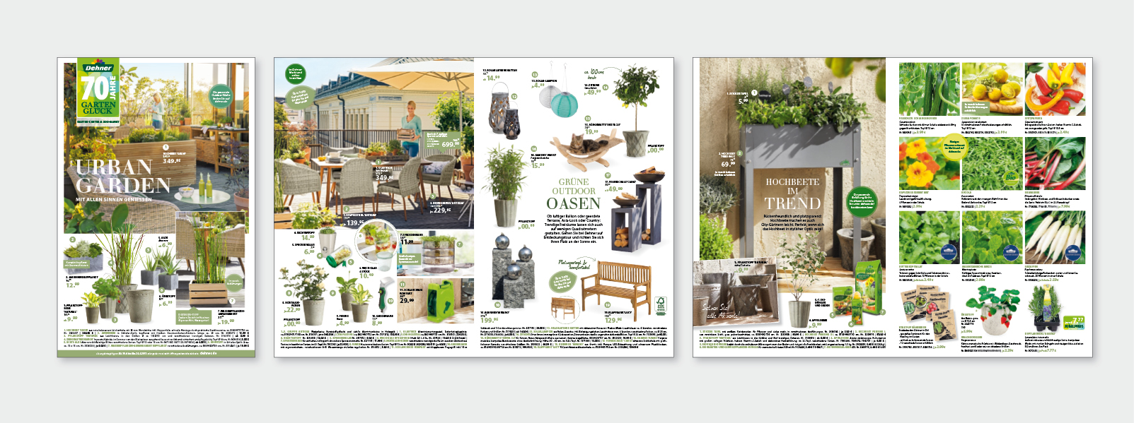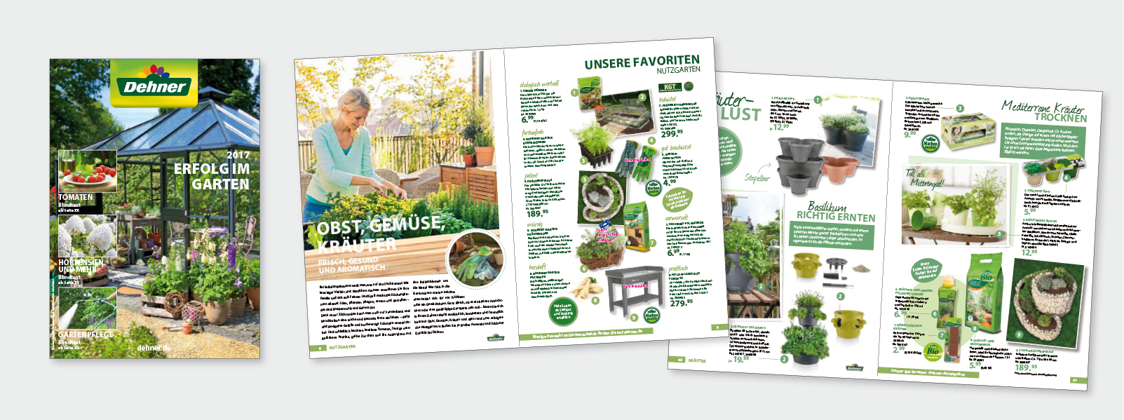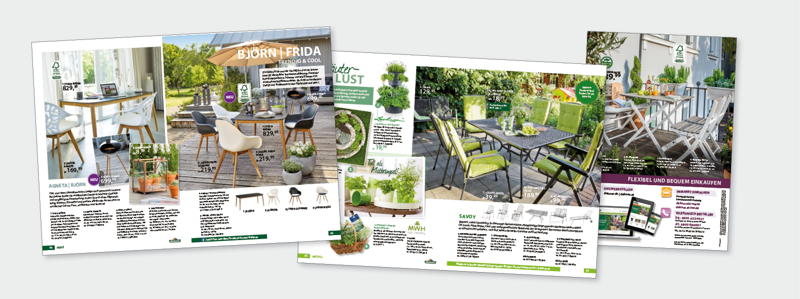 Aufgrund unserer Gestaltung an Werbemitteln von Fa. mirabeau ist Fa. Dehner auf uns zugekommen. Fazit: Unser Baumschul- und Gartenmöbelkatalog für Fa. Dehner.