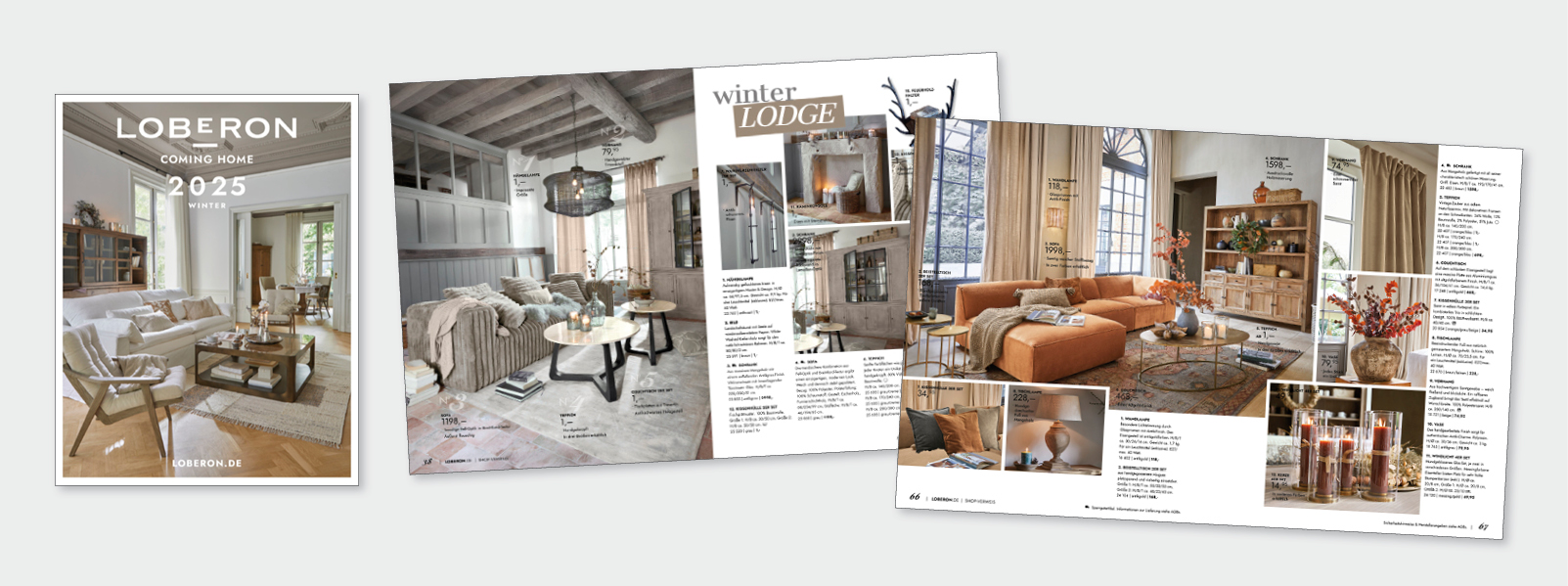 Betreten wir visuell den Webauftritt oder den Katalog von LOBERON, kommen wir in eine eigens für unseren Kunden erschaffene Welt stilvollen Interieurs, in der Leben und Wohnen untrennbar vereint sind. Ob Indoor oder Outdoor – die Vielfalt individueller Einrichtungsstile wird hier zum Programm. „Coming home“, das Credo von LOBERON repräsentiert eine innovative Auffassung zeitgemäßen Wohnens mit hohem Wohlfühlfaktor.